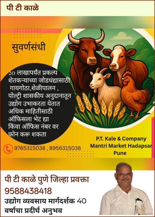 P T Kale & CompanyWe provide business solutions, offering expert guidance on various government schemes and subsidies such as PMEGP, CMEGP, NLM, NDDB, MSME, PSI, NABARD, and ANNASAHEB PATIL MAHAMANDAL.